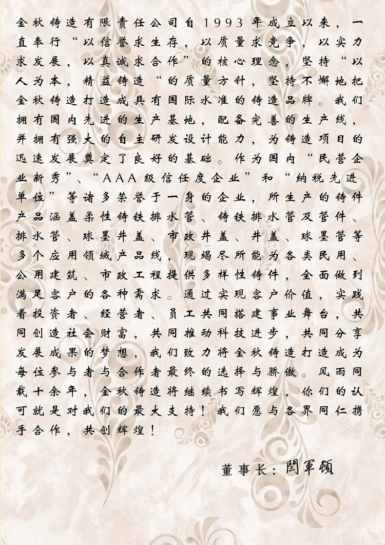 鑄造行業(yè)優(yōu)秀品牌 1993年成立 自營(yíng)出口業(yè)務(wù) 產(chǎn)品暢銷(xiāo)全球