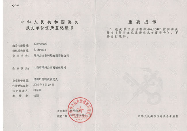 鑄造行業(yè)優(yōu)秀品牌 1993年成立 自營(yíng)出口業(yè)務(wù) 產(chǎn)品暢銷全球