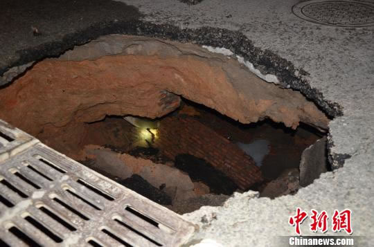 記者趕至事發(fā)現(xiàn)場,看到事發(fā)地點的柏油路面開口處約1平方米,順著開口處往下看,是一個巨大的漏洞。龍崗區(qū)水務局運管單位深圳國禎環(huán)保公司調(diào)來大型挖掘機,連夜勘察維修。